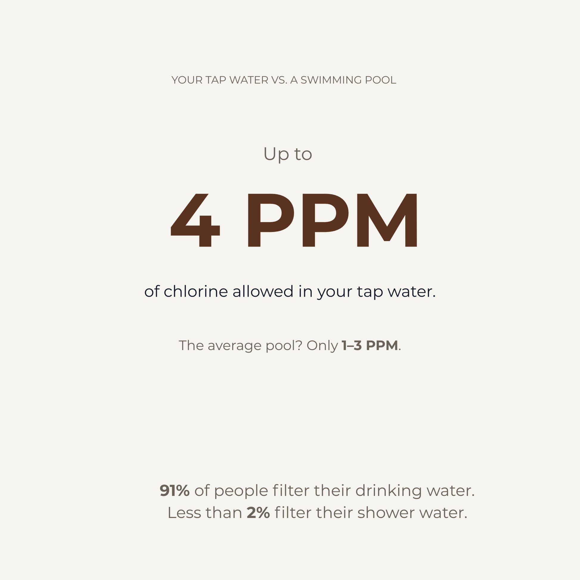 Shampoo lathers better. Skin stops feeling tight. That chlorine “pool smell” disappears from your very first shower.